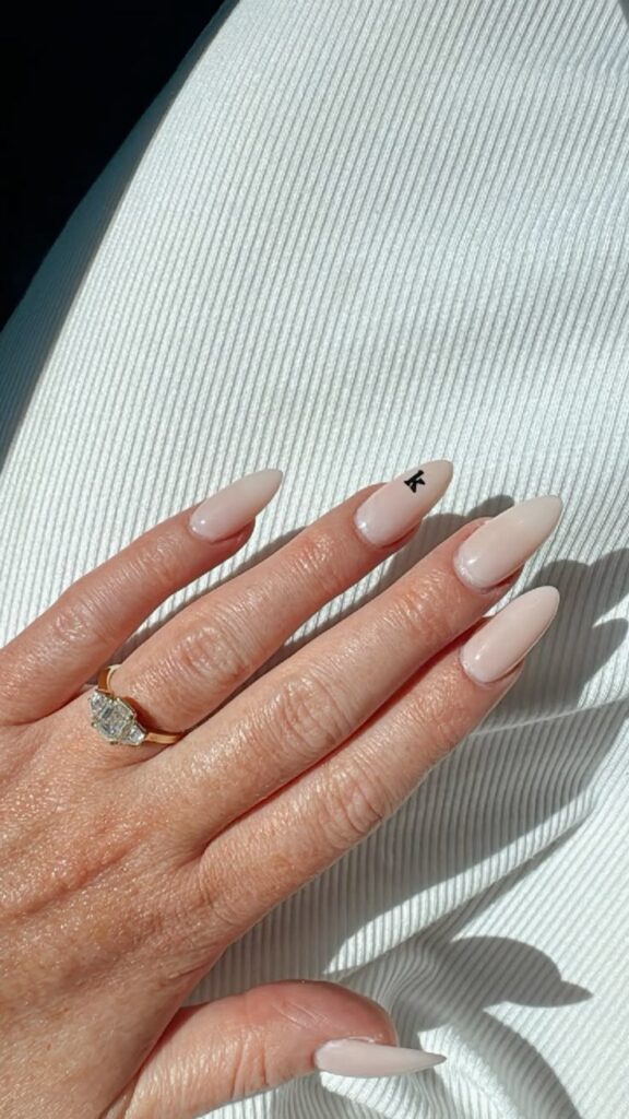 Wer Lust auf ein kleines Detail hat, kann sich für minimalistische Nail Art entscheiden: ein feiner Strich in Gold, ein kleiner Perlenpunkt oder eine zarte geometrische Linie. Auch eine super süße Idee: den Anfangsbuchstaben deines Partners dezent auf einem Nagel einarbeiten zu lassen. Weniger ist mehr – und es wirkt modern, individuell und gleichzeitig romantisch.